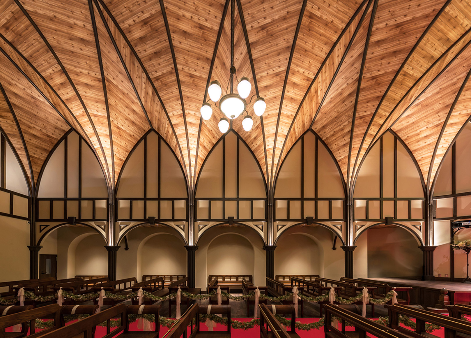 空間が持つ歴史や風合いを尊重し、光・風・緑と調和する再生デザインで、記憶を活かし、未来の祝福へと結びます。