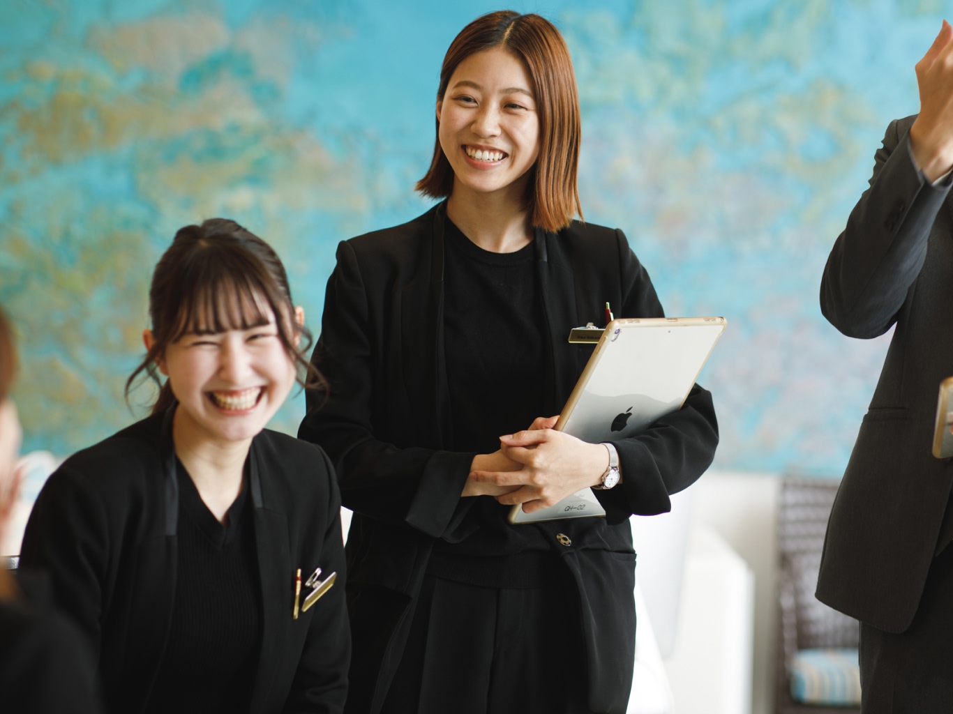 施設の顔としてエントランスの受付に常駐し、ご来館されるお客様のご案内、またご婚礼時に、ご列席ゲストの受付・クローク対応をします。